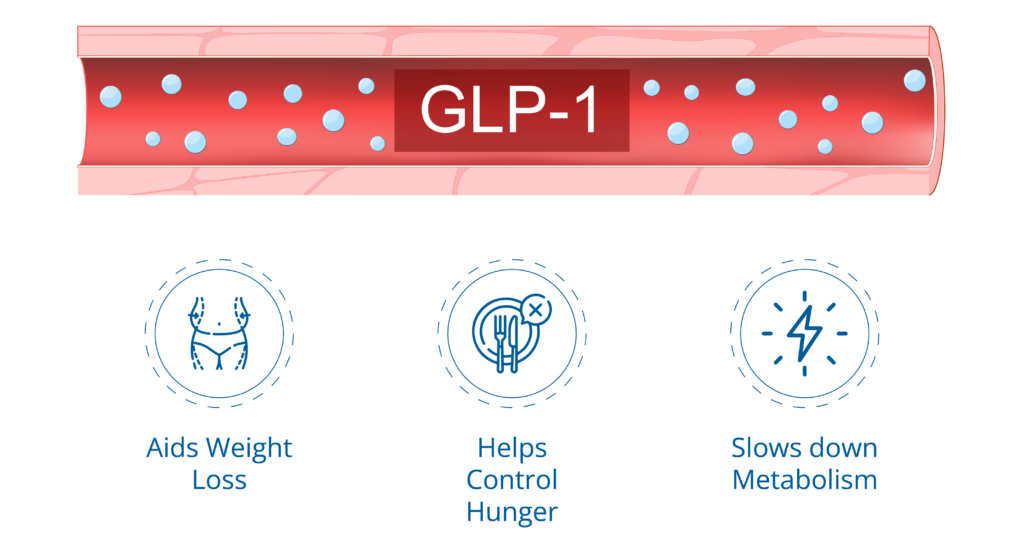GLP-1 has a unique way of aiding weight loss. Scientists are still figuring out why overweight people have less of a hormone called GLP-1. They think it might be due to high levels of certain fats in the blood called non-steroidal fatty acids (NEFA).